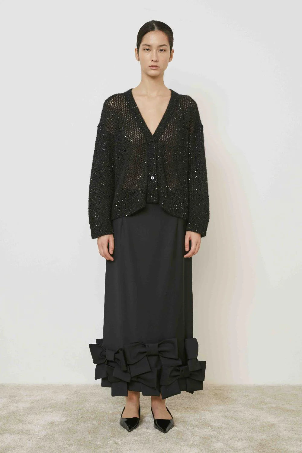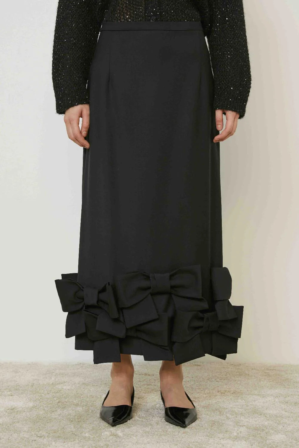 Gonna con fiocchi MeimeijGONNA ELEGANTE CON FIOCCHI APPLICATI ALL'ORLO E SPACCO SUL DIETRO