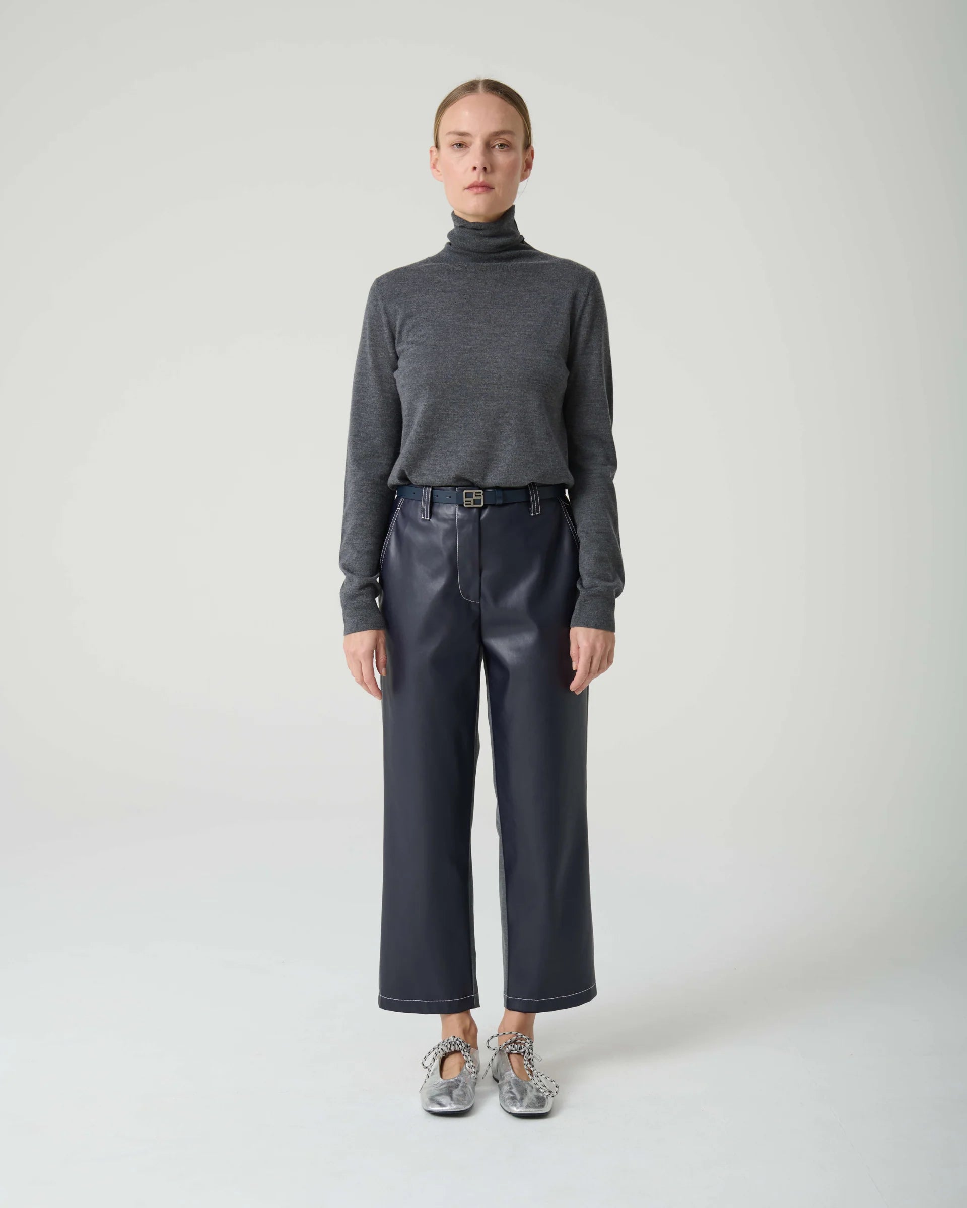 Contemporanei e raffinati, questi pantaloni patchwork sono realizzati in misto viscosa ed ecopelle. Presentano una vita alta con passanti e tasche anteriori alla francese, mentre il retro è rifinito con due tasche applicate. Perfetti da abbinare alla giacca coordinata per impreziosire il tuo look. Prodotto in Italia.