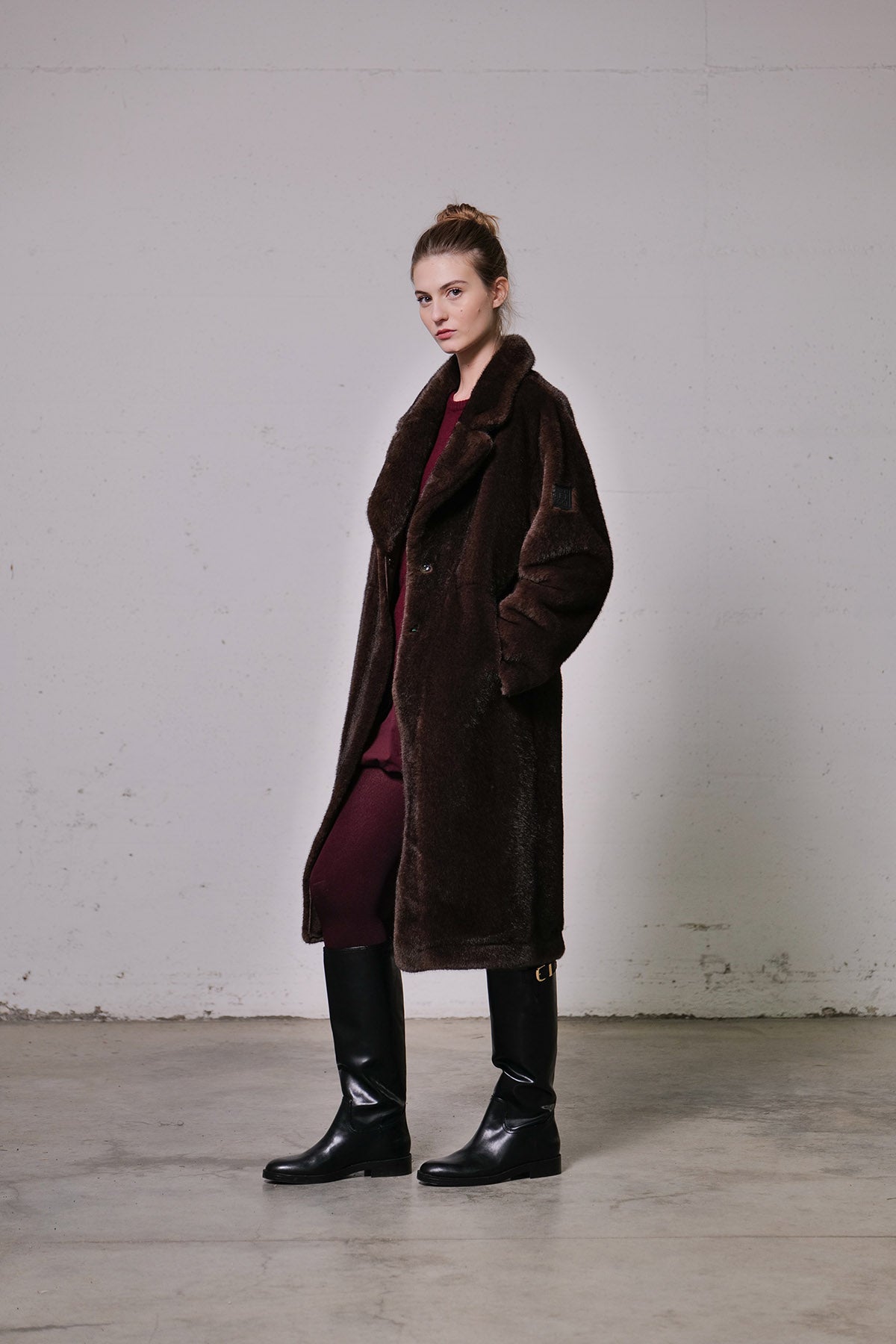 L’iconica cappotto doppio petto si rinnova in una versione dai connotati più glamour. Realizzata in soffice ecopelliccia simil volpe, impreziosita da delicate sfumature di colore sulle punte che creano un effetto naturale e sofisticato.