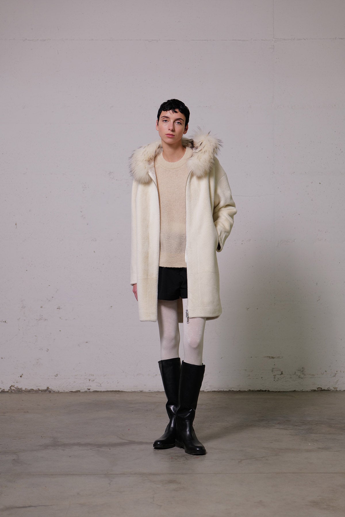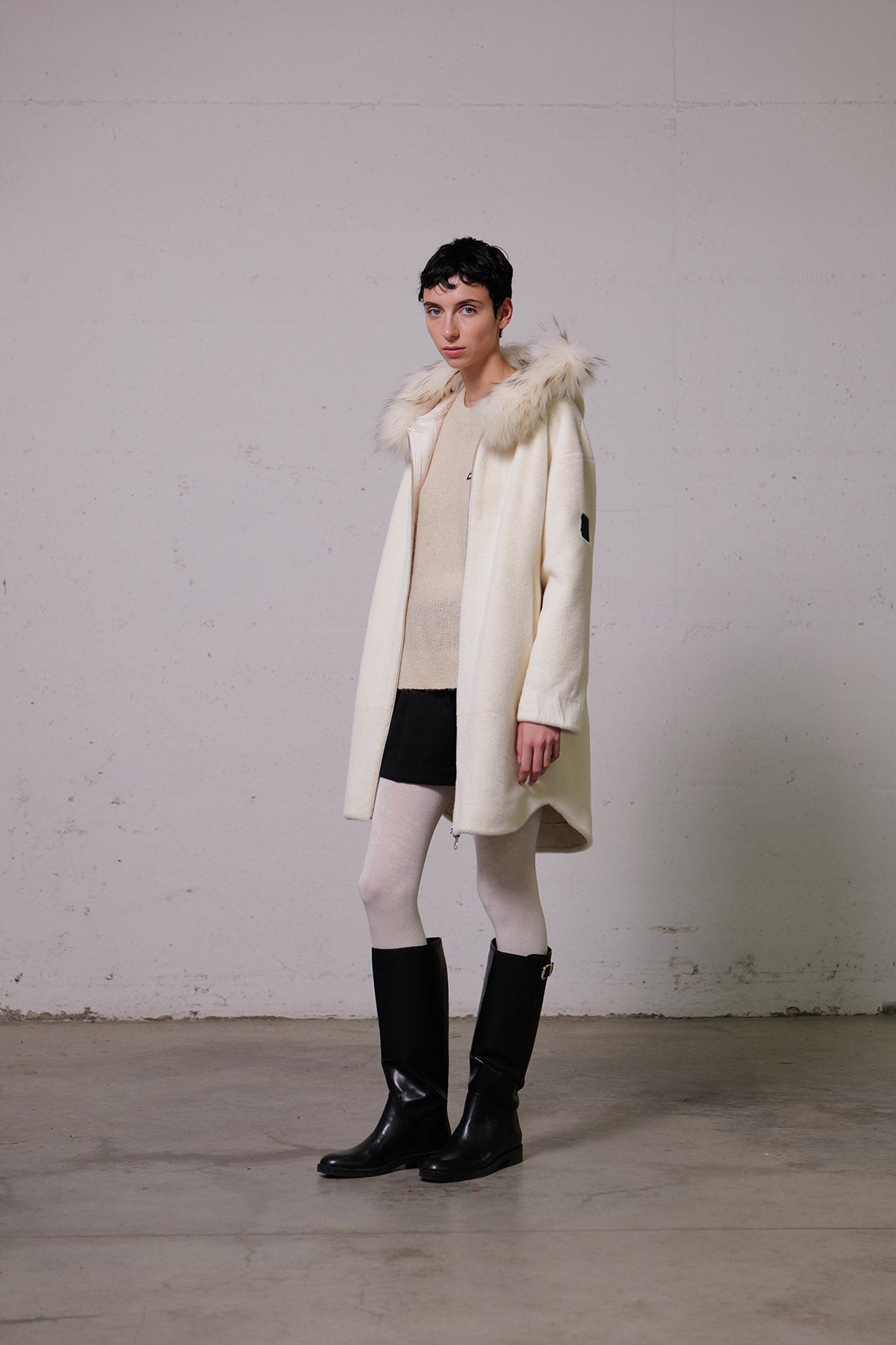 Realizzato in soffice eco-pelliccia effetto visone, dal design senza tempo, parka iconico della collezione