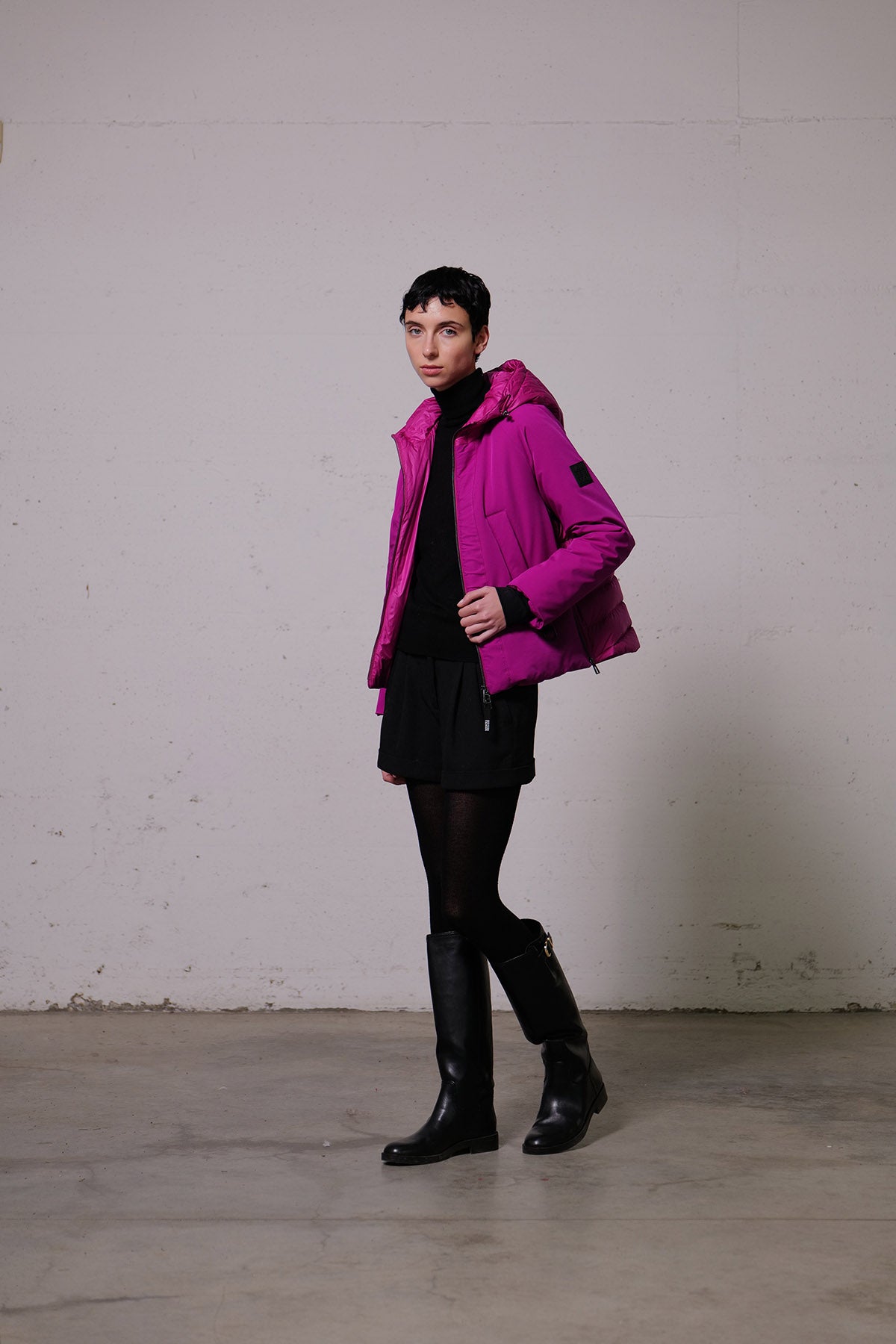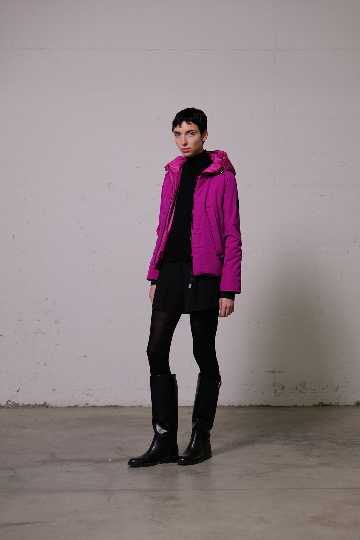 Giubbino corto MontereggiRivisitazione in chiave invernale e bimateriale dell’iconico short Parka della collezione Montereggi, dalla forma leggermente flattering. Realizzato nel nuovo tessuto tecnico 3-layers performante e imbottitura leggera per inverni miti: nylon opaco elasticizzato, membrana impermeabile e antivento, e maglina interna elasticizzata. Queste caratteristiche danno vita a un materiale estremamente...